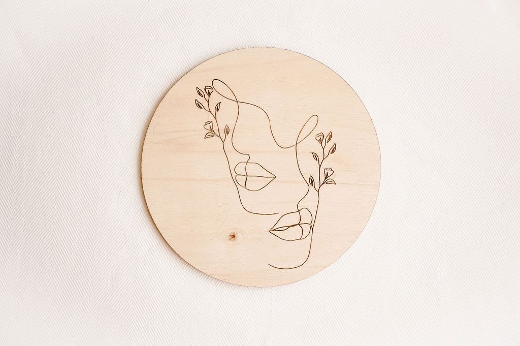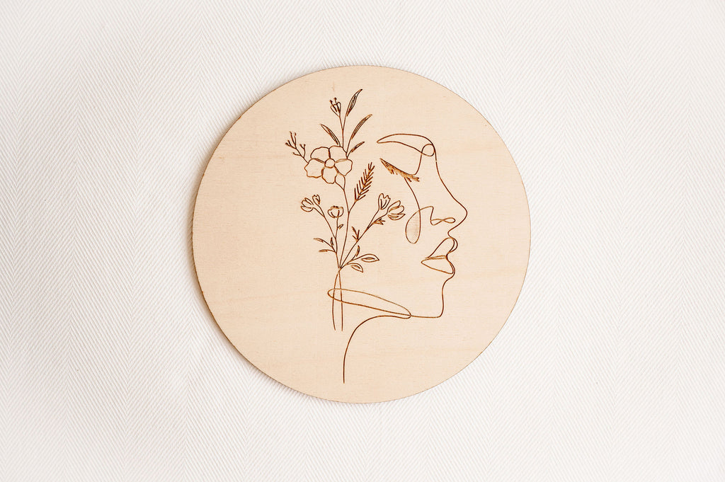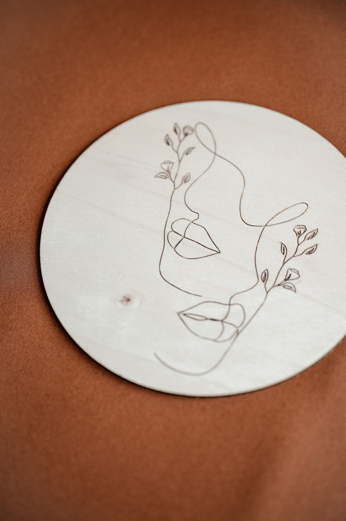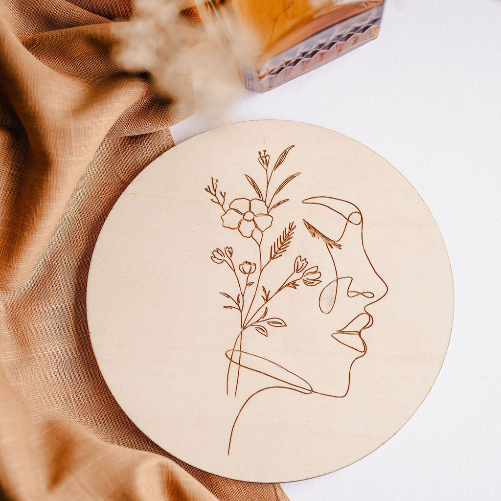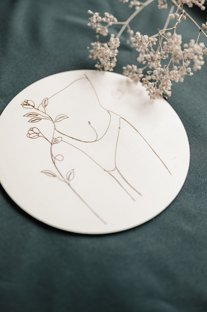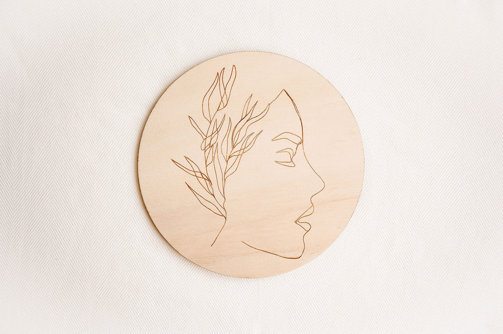 Minimalistická dekorace Víla vnese do prostoru lehkost a eleganci. Na kruhovém kusu dřeva je vypálený obrázek jediným tahem. V nabídce je celkem 7 obrázků.
