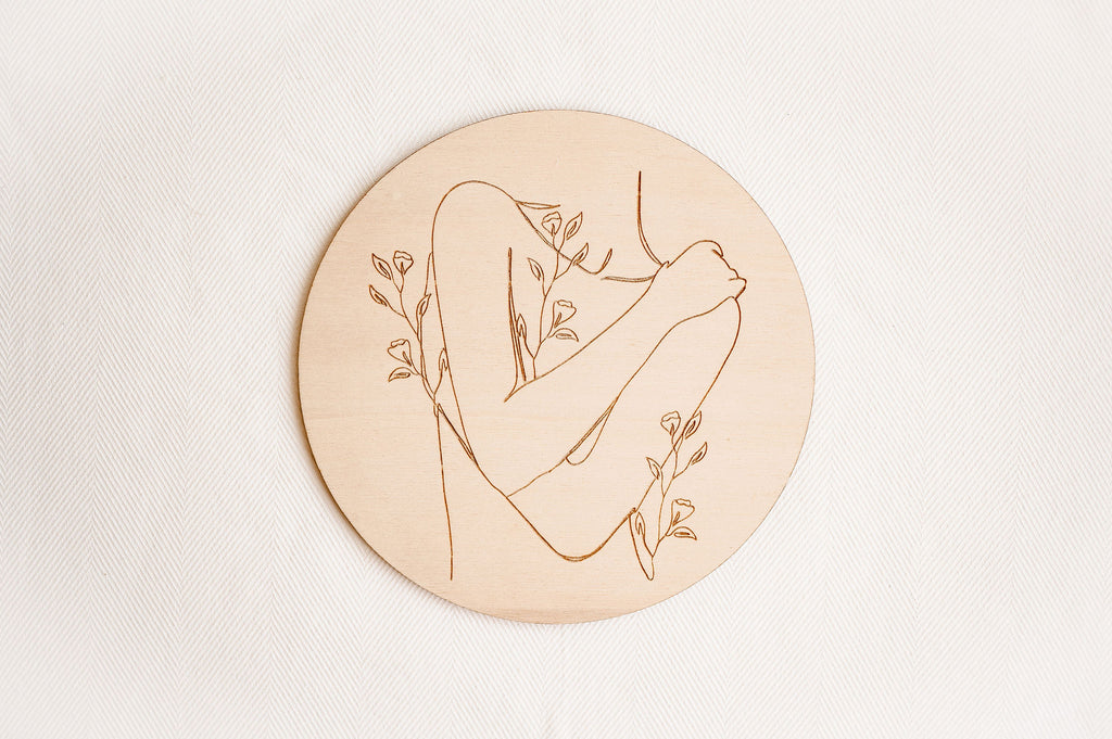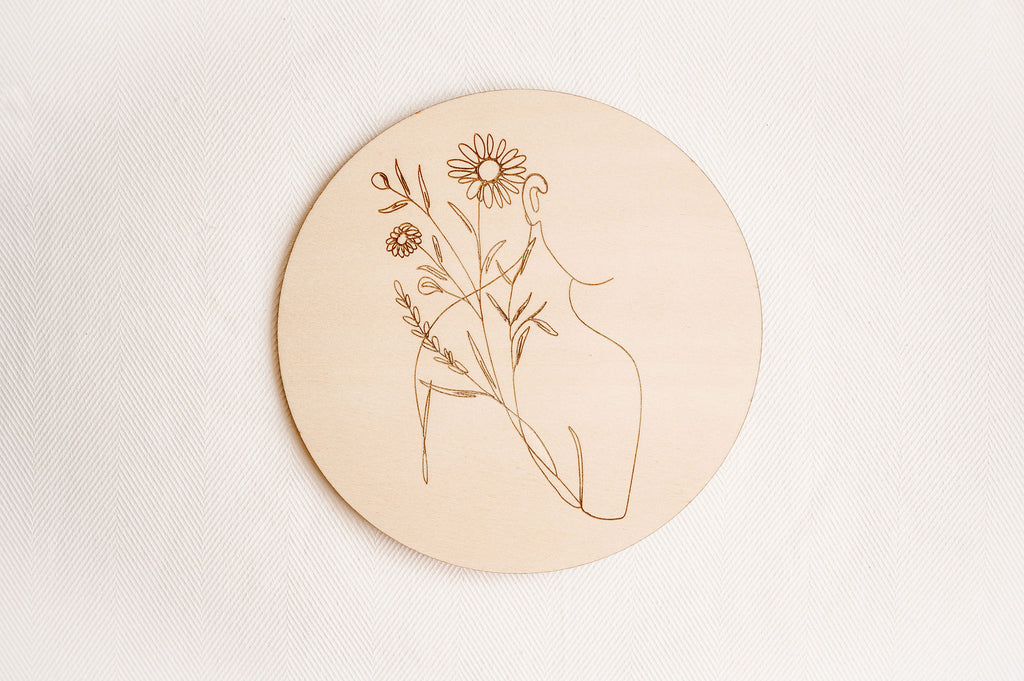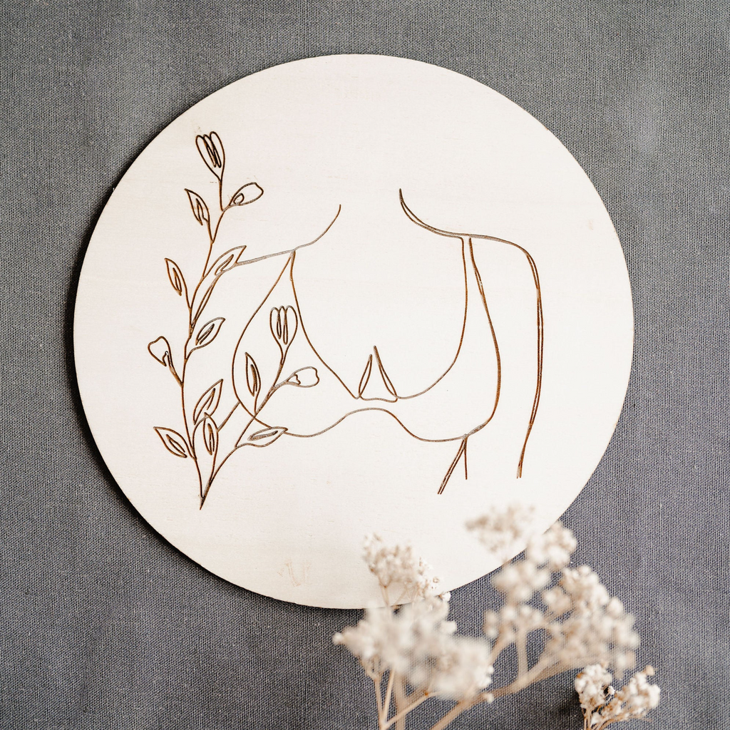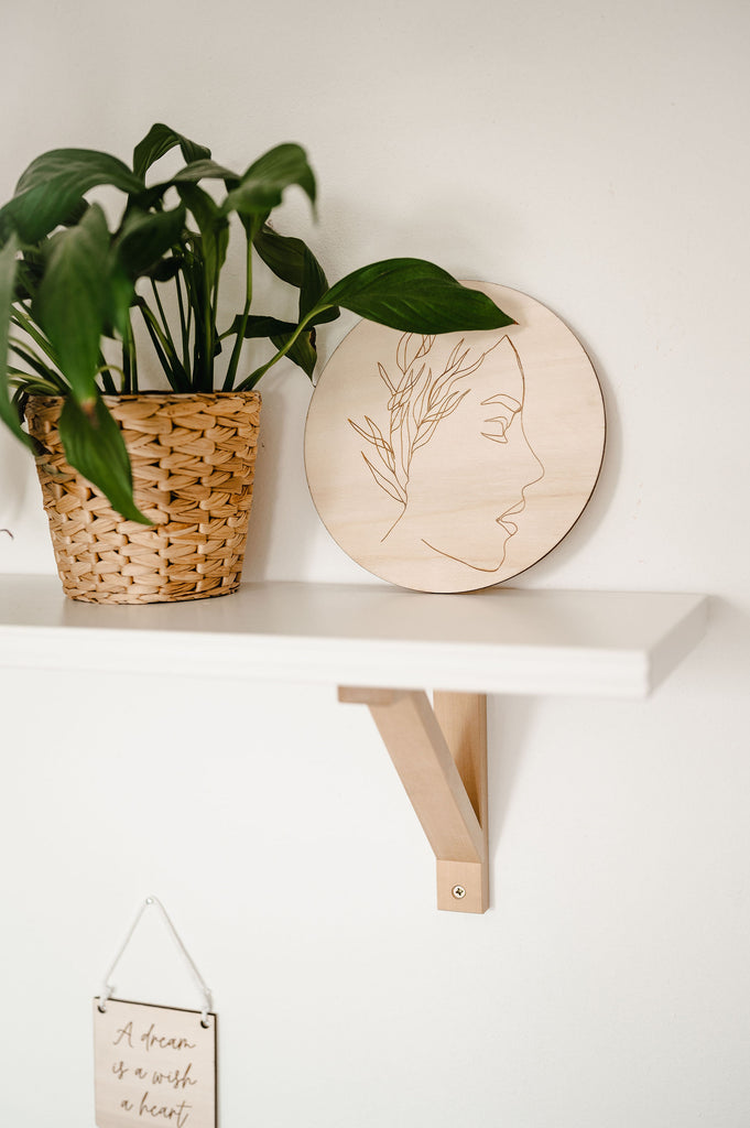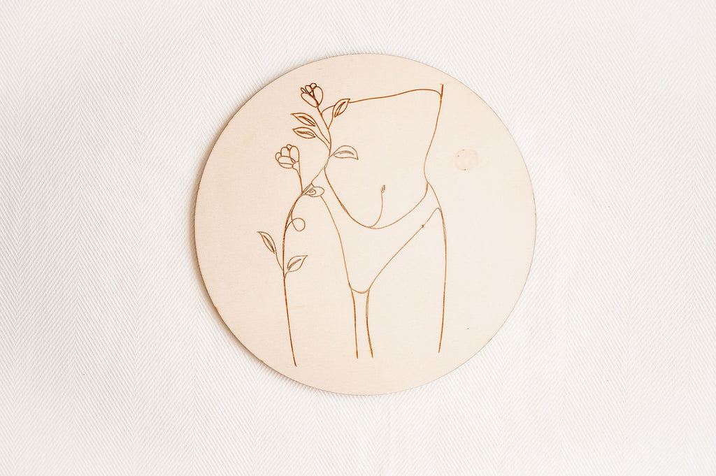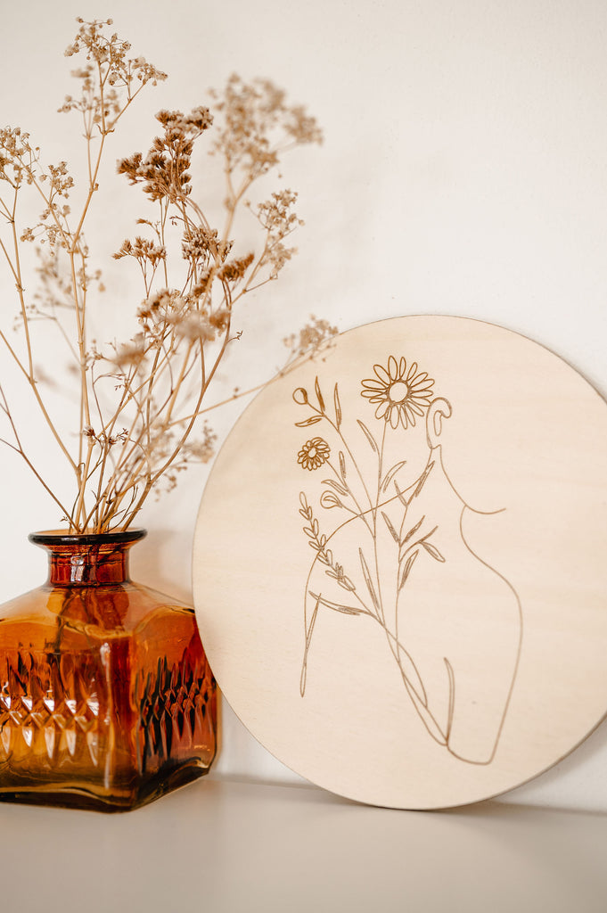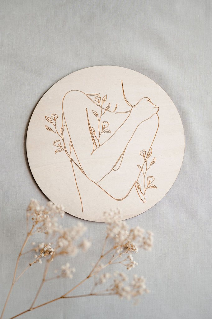Minimalistická dekorace Víla vnese do prostoru lehkost a eleganci. Na kruhovém kusu dřeva je vypálený obrázek jediným tahem. V nabídce je celkem 7 obrázků.